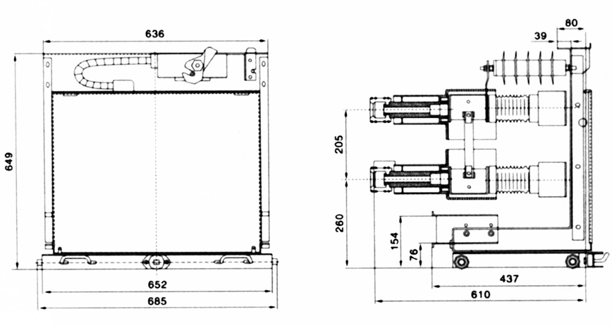 此車(chē)型適用于配置JDZ(X)10<G>型電壓互感器,安裝尺寸圖參照大連第一互感器廠,如配置其他型號(hào)電壓互感器,訂貨時(shí)需另外注明。熔斷器按XRNP-10型或RN2-10型配置。
