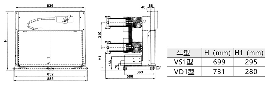 中置PT手車(chē)外形尺寸