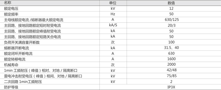 主要技術(shù)參數(shù)